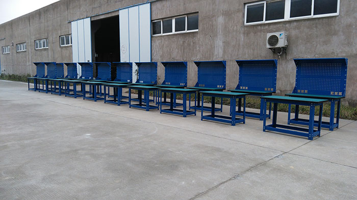 4.工作台除桌面外所有钣金表面是流水线静电喷塑,默认颜色:蓝色。另有浅灰色可供选择。